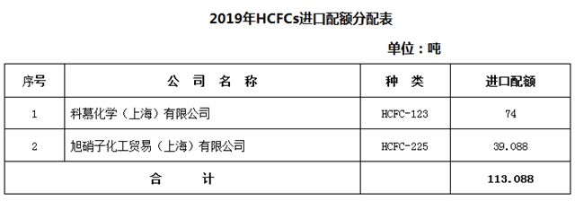 3.2019年HCFCs進口配額分配表