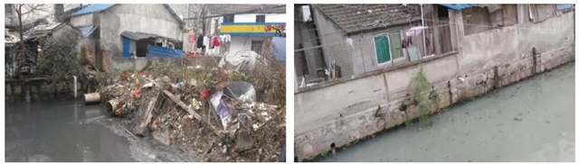 青龍河位于蘇州城北虎丘茶花村,東起山塘河,西至觀景新村,河道長約740m。河道周邊是集加工與銷售于一體的婚紗市場,沿岸小作坊密布,周邊居住大量的外來人口,據(jù)統(tǒng)計,該區(qū)域?qū)嵱腥丝谶_(dá)4萬人以上。由于社區(qū)多年未能組建管理班子,河道兩岸及周邊環(huán)境長期無有效管理,大量的婚紗廢料、居民生活垃圾被隨意拋灑在岸坡及河道內(nèi),河岸空地堆滿雜物,環(huán)境極其臟亂,不堪入目;周邊店面、小作坊雜亂無序,兩岸私搭亂建問題突出,雜樹雜草叢生,整體環(huán)境臟亂。另外,青龍河改道工程自2013年開工以來,由于幾戶居民無法拆遷,致使西側(cè)河道無法溝通,為城中村斷頭河。