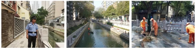 為達(dá)到消除黑臭水體目標(biāo),在“截、收、清、修、引、管”幾個(gè)方面同時(shí)用力,消除河道內(nèi)源污染,截?cái)嗯趴谖鬯?,同時(shí)引流補(bǔ)水、修復(fù)生態(tài),提升河道的自凈能力。截:完成16處河道排污口控源截污,并逐一編號(hào)、公示信息;收:匯水區(qū)域污水收集,完成雨污分流6.99km2,新建雨污管網(wǎng)113km,每天可收集污水9.1萬噸;清:清除河道淤泥垃圾約2萬m3;修:生態(tài)修復(fù),在重要河段安裝3處曝氣增氧裝置,并增加生態(tài)浮島;引:新建引水補(bǔ)水回流管道,促進(jìn)局部水循環(huán);管:對(duì)匯水區(qū)范圍內(nèi)10家重點(diǎn)排水戶全部辦理排水許可。同時(shí),沿河420個(gè)截流井溢流口均安裝防異味裝置,有效減少溢流口散發(fā)的污水異味。
