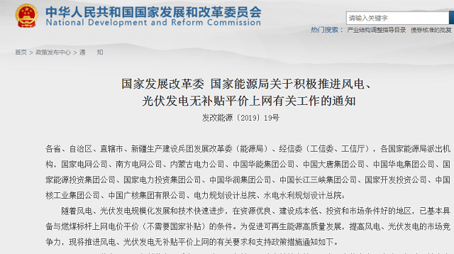 隨著風(fēng)電、光伏發(fā)電規(guī)模化發(fā)展和技術(shù)快速進(jìn)步,在資源優(yōu)良、建設(shè)成本低、投資和市場(chǎng)條件好的地區(qū),已基本具備與燃煤標(biāo)桿上網(wǎng)電價(jià)平價(jià)(不需要國家補(bǔ)貼)的條件。為促進(jìn)可再生能源高質(zhì)量發(fā)展,提高風(fēng)電、光伏發(fā)電的市場(chǎng)競(jìng)爭(zhēng)力,現(xiàn)將推進(jìn)風(fēng)電、光伏發(fā)電無補(bǔ)貼平價(jià)上網(wǎng)的有關(guān)要求和支持政策措施通知如下。