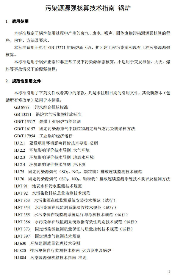 為貫徹《中華人民共和國環(huán)境保護法》《中華人民共和國環(huán)境影響評價法》《中華人民共和國大氣污染防治法》《中華人民共和國水污染防治法》《中華人民共和國環(huán)境噪聲污染防治法》《中華人民共和國固體廢物污染環(huán)境防治法》等法律法規(guī),完善固定污染源源強核算方法體系,指導和規(guī)范鍋爐污染源源強核算工作,制定本標準。本標準規(guī)定了鍋爐使用過程中產(chǎn)生的廢氣、廢水、噪聲、固體廢物污染源源強核算的程序、內(nèi)容、方法及要求等。本標準附錄A~附錄D均為資料性附錄。本標準為首次發(fā)布。