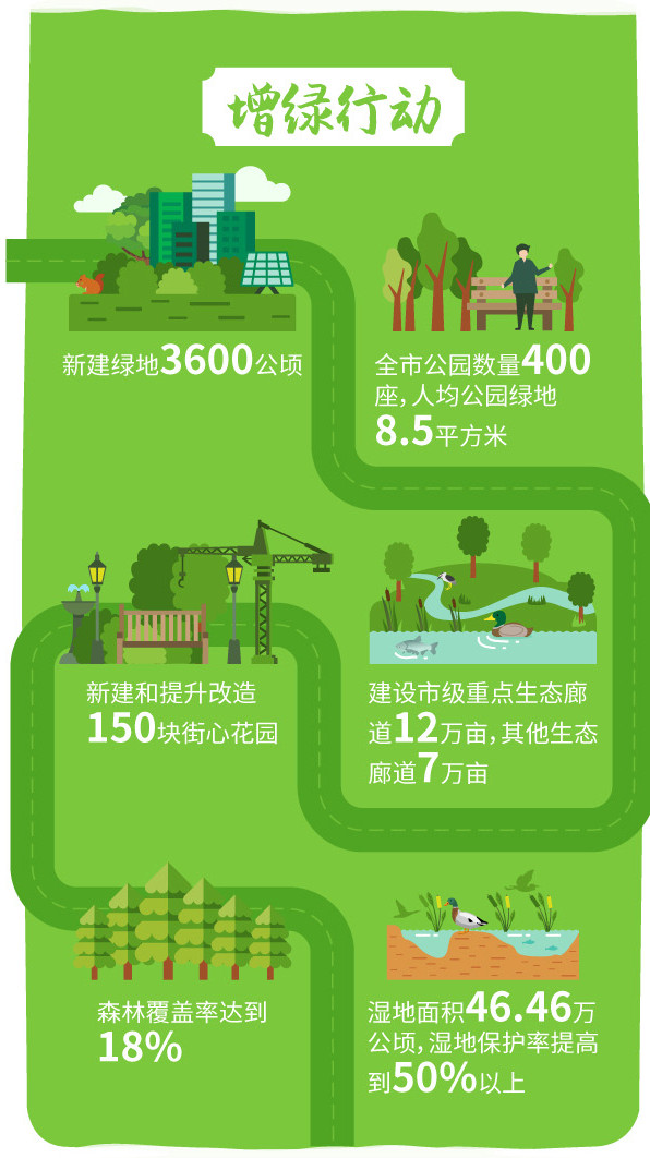 “增綠行動”聚焦生態(tài)系統(tǒng)服務(wù)功能提升,加快推進綠地系統(tǒng)建設(shè),全面推進生態(tài)廊道建設(shè),不斷提升綠地花園服務(wù)能級,加大濕地、綠林地等生態(tài)資源保護力度。