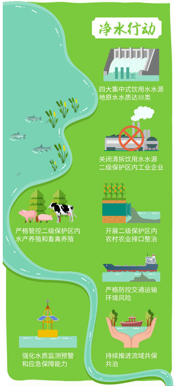 “凈水行動”聚焦飲用水水源地安全保證,全面深化水源地保護區(qū)污染整治,嚴控交通、工業(yè)、農(nóng)業(yè)等環(huán)境風(fēng)險,強化水質(zhì)監(jiān)測預(yù)警和應(yīng)急保障能力,持續(xù)推進流域共保共治。到2020年,本市原水水質(zhì)達到地表水Ⅲ類水質(zhì)標準。