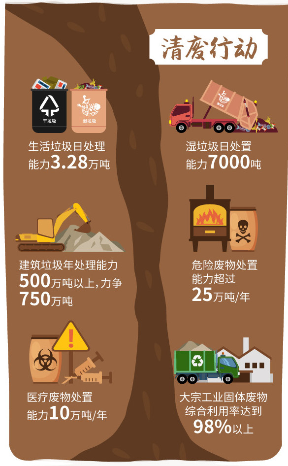 “清廢行動”聚焦各類固體廢物全過程管理,全面排查整治各類垃圾的非法傾倒和歷史堆點,加快各類固廢利用處置設(shè)施建設(shè)完善,確保各類固廢利用處置能力全面提升。