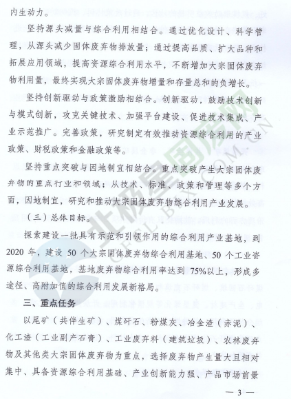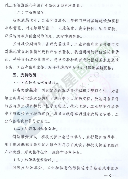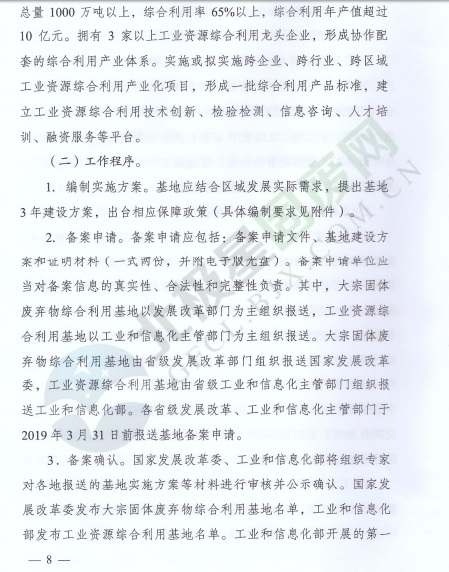 為落實(shí)《中華人民共和國經(jīng)濟(jì)和社會(huì)發(fā)展第十三個(gè)五年規(guī)劃綱要》《循環(huán)發(fā)展引領(lǐng)計(jì)劃》和《工業(yè)綠色發(fā)展規(guī)劃》,促進(jìn)產(chǎn)業(yè)集聚,提高資源綜合利用水平,推動(dòng)資源綜合利用產(chǎn)業(yè)高質(zhì)量發(fā)展,近日,國家發(fā)展改革委辦公廳和工業(yè)和信息化部辦公廳印發(fā)了關(guān)于推進(jìn)大宗固體廢棄物綜合利用產(chǎn)業(yè)集聚發(fā)展的通知。全文如下: