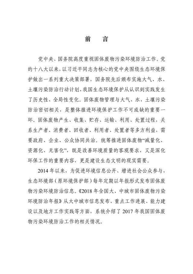 相關(guān)資料下載:2018年全國大、中城市固體廢物污染環(huán)境防治年報(bào).pdf