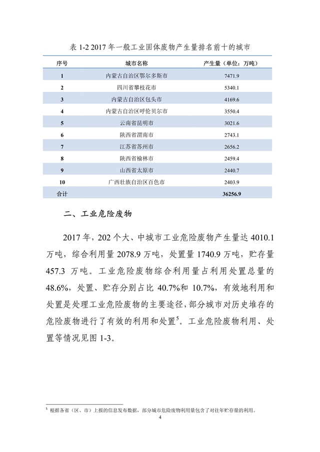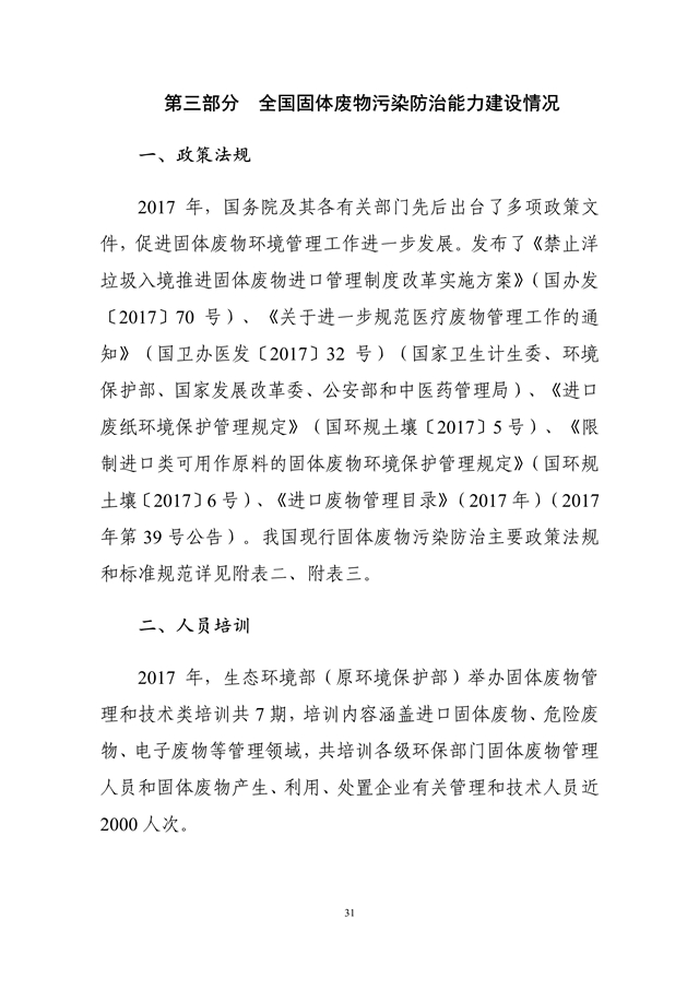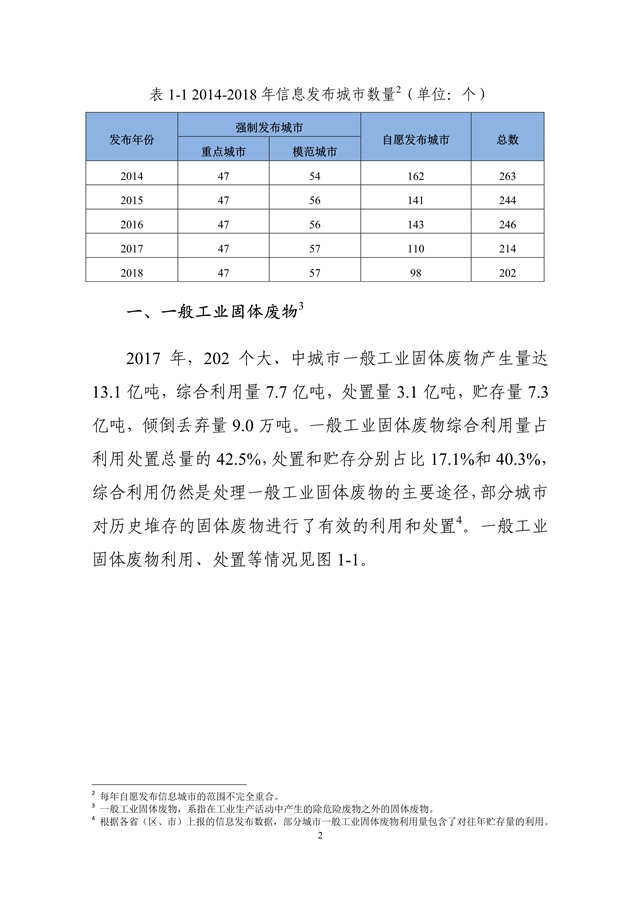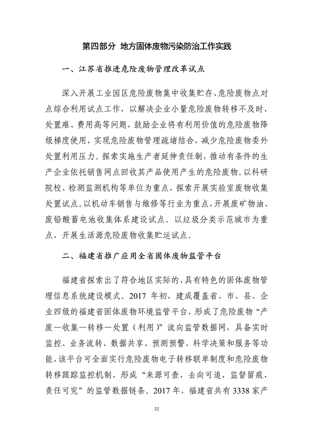 生態(tài)環(huán)境部發(fā)布了《2018年全國大、中城市固體廢物污染環(huán)境防治年報(bào)》,從大中城市信息發(fā)布、重點(diǎn)工作進(jìn)展、能力建設(shè)以及地方工作實(shí)踐等方面,系統(tǒng)介紹了我國固體廢物污染環(huán)境防治工作的相關(guān)情況。2014 年以來,為促進(jìn)環(huán)境信息公開、增進(jìn)社會(huì)公眾參與, 生態(tài)環(huán)境部(原環(huán)境保護(hù)部)每年定期以年報(bào)形式發(fā)布固體廢物污染環(huán)境防治信息。