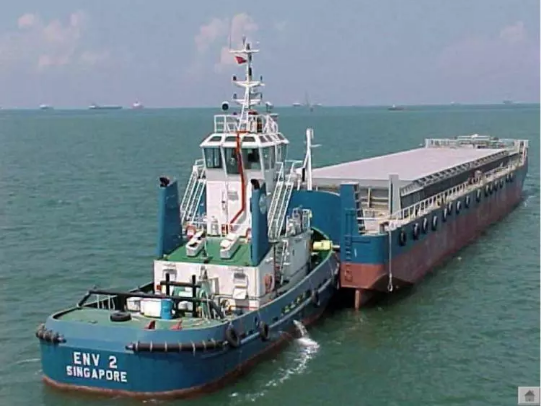 運(yùn)送的船只由駁船由拖船兩部分組成,駁船裝置垃圾,并配有相應(yīng)長度的蓋子,防止垃圾在運(yùn)送過程中被吹進(jìn)附近海域。大土南轉(zhuǎn)運(yùn)站距離實(shí)馬高島 33.3 公里,需要行駛 3 小時才能到達(dá)。