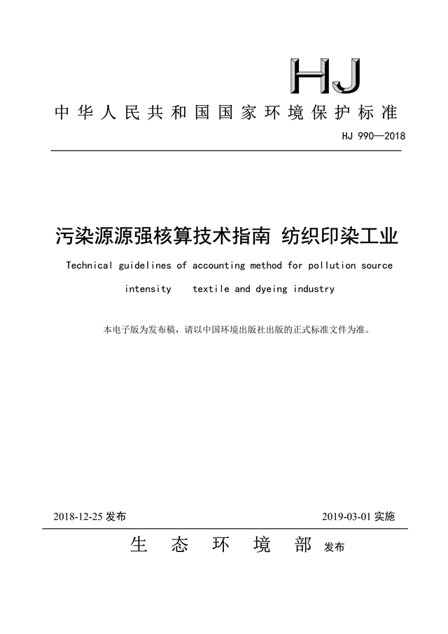 國(guó)家標(biāo)準(zhǔn)丨污染源源強(qiáng)核算技術(shù)指南 紡織印染工業(yè)