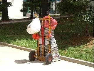 新加坡舊貨收集商推著手推車挨家挨戶收集有價(jià)值的家用廢棄物