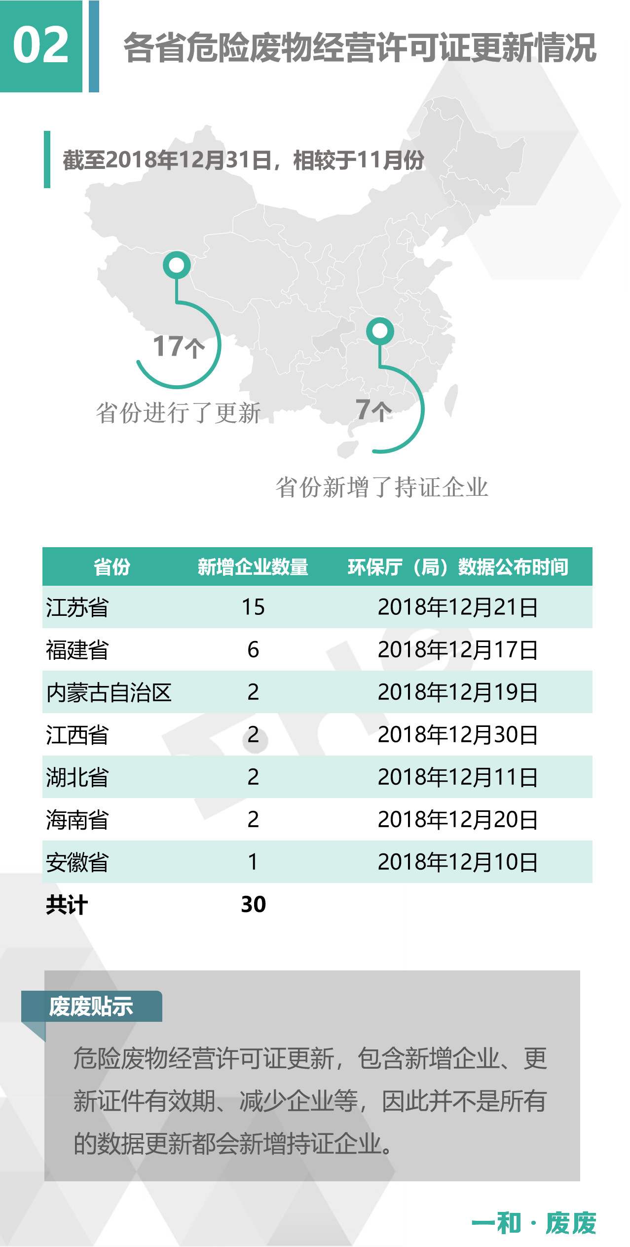 市場 | 2018年12月全國危險廢物經(jīng)營許可證統(tǒng)計概況