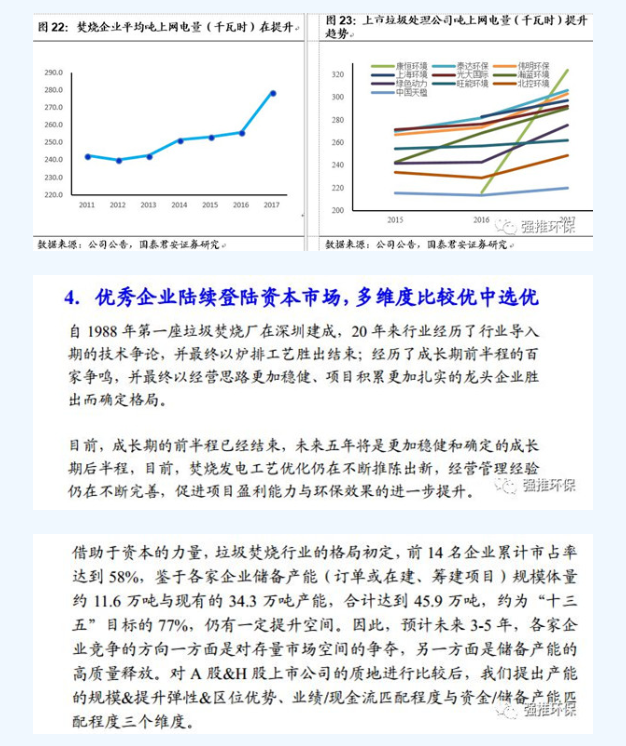 ?、谑杖攵烁纳茝椥裕簢嵃l(fā)電量顯著提升、垃圾處理費(fèi)的低價(jià)競(jìng)爭(zhēng)淡出市場(chǎng),存量項(xiàng)目提價(jià)趨勢(shì)明顯。
