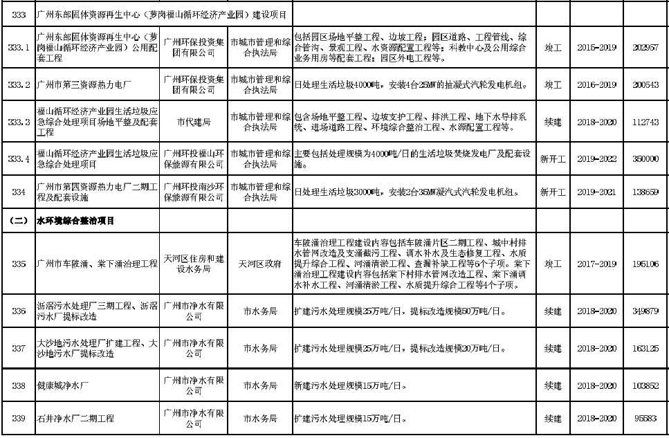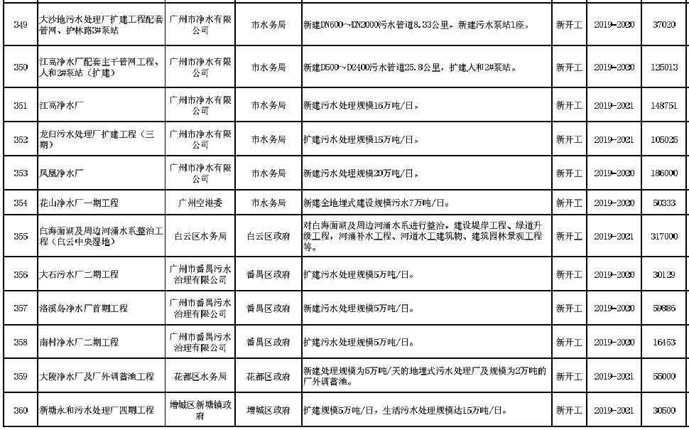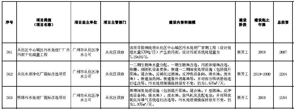 廣州市2019年重點建設(shè)項目計劃(環(huán)保項目)