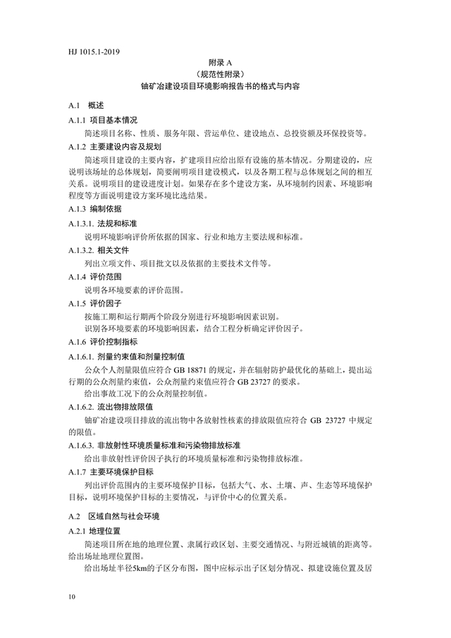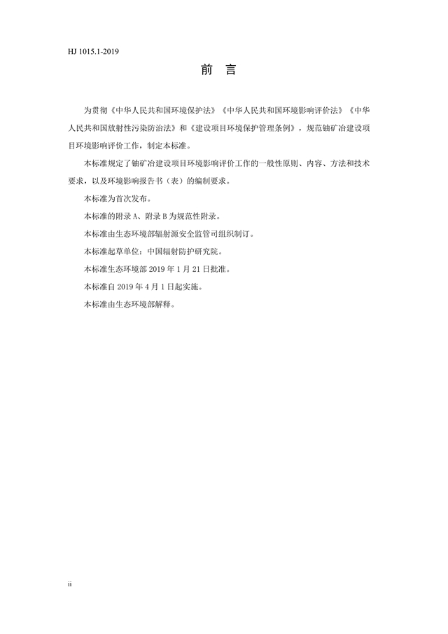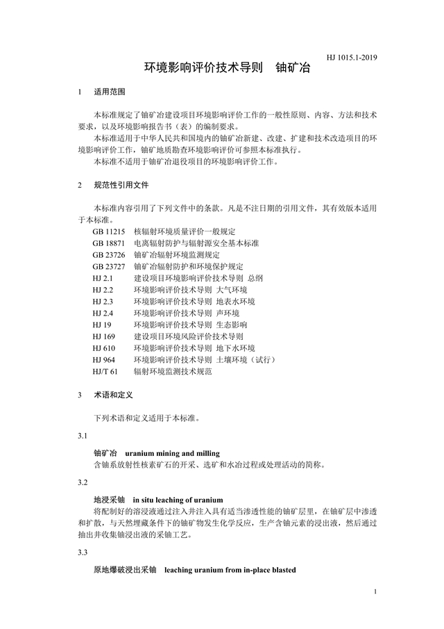 環(huán)境影響評(píng)價(jià)技術(shù)導(dǎo)則 鈾礦冶(HJ 1015.1-2019)