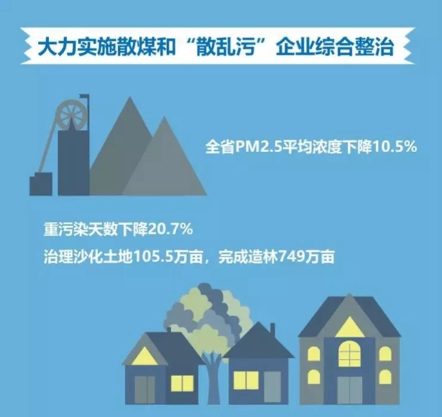 大力實(shí)施散煤和“散亂污”企業(yè)綜合整治,強(qiáng)化汾渭平原聯(lián)防聯(lián)控,全省PM2.5平均濃度下降10.5%,重污染天數(shù)下降20.7%。