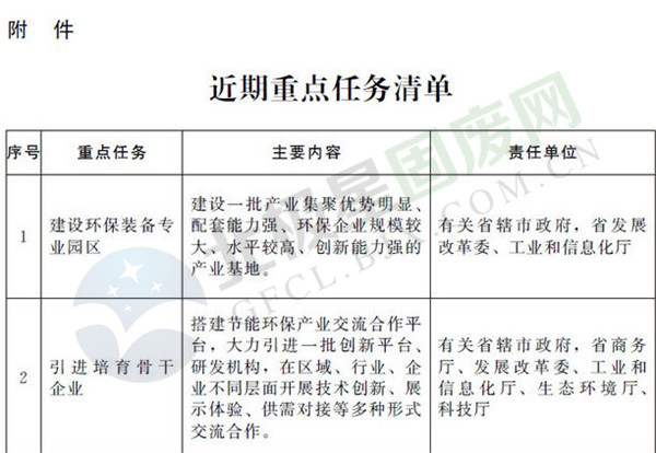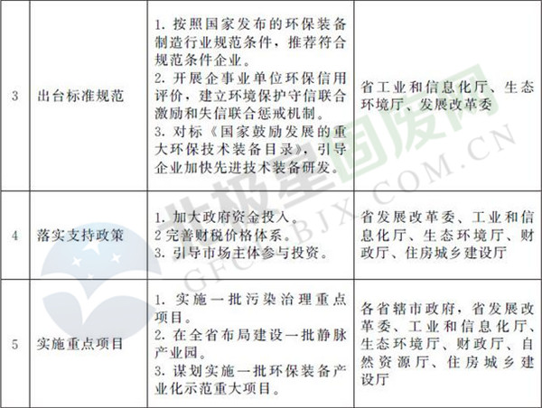 (三)發(fā)展目標。到2020年,基本形成環(huán)保產(chǎn)業(yè)發(fā)展制度政策體系,環(huán)保裝備和服務(wù)產(chǎn)業(yè)快速發(fā)展,質(zhì)量效益顯著提升。工業(yè)煙氣污染物協(xié)同治理、高濃度工業(yè)廢水處理、土壤生物修復(fù)、城鄉(xiāng)廢棄物處理處置等領(lǐng)域技術(shù)裝備水平和服務(wù)能力達到國際先進水平,培育和引進20家左右產(chǎn)值過10億元的骨干企業(yè),建設(shè)8—10個百億元級環(huán)保裝備制造和服務(wù)綜合園區(qū),全省環(huán)保裝備和服務(wù)產(chǎn)業(yè)主營業(yè)務(wù)收入超過2000億元,形成全省經(jīng)濟發(fā)展新動能和增長點。