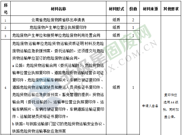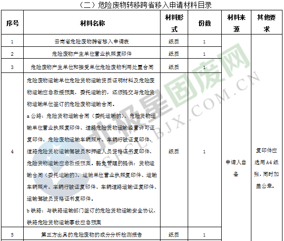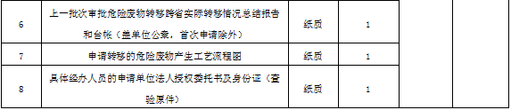 (一)危險廢物轉(zhuǎn)移跨省移出申請材料目錄