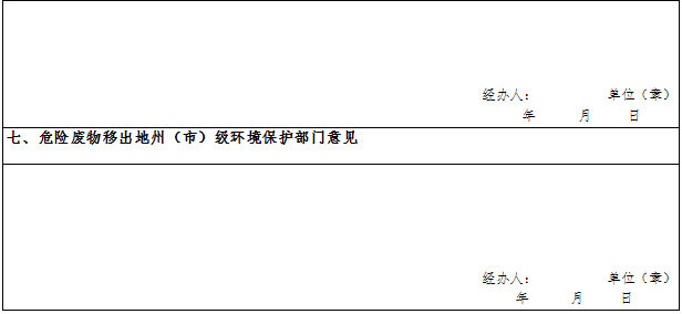 云南省危險廢物轉(zhuǎn)移跨省移出申請表