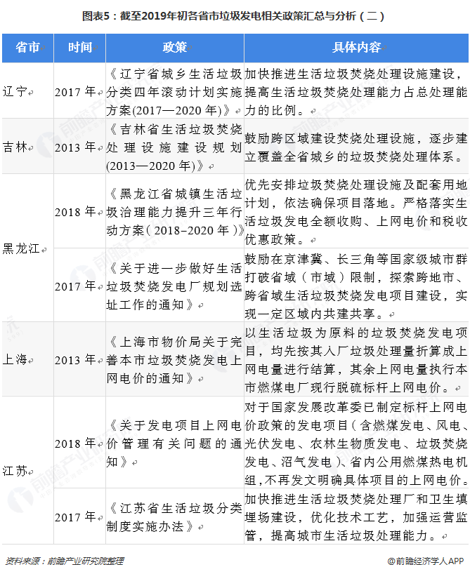 2018年各省市垃圾發(fā)電政策匯總
