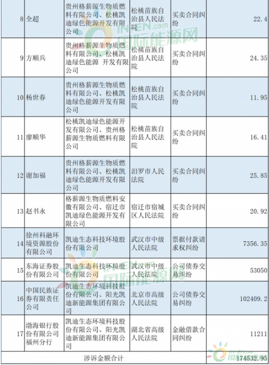 凱迪生態(tài)的危機在2018年又加深了一步,退市的傳言、拖欠工資的傳言時不時地出現(xiàn)在各大財經媒體的熱點頭條里。2018年5月,凱迪生態(tài)的有息債務本息余額合計超過240億元,2019年1月18日,凱迪生態(tài)發(fā)布公告稱,目前逾期債務共計116.47億元,占公司最近一期經審計凈資產106.33億元比例為109.54%。因為各種債務違約問題,凱迪生態(tài)已經深陷訴訟泥沼,國際能源網(wǎng)記者調查發(fā)現(xiàn),僅2019年1月18-1月25日,短短的一周時間,該公司新增的訴訟案件已經多達17起,累計涉訴金額高達17.45億元。