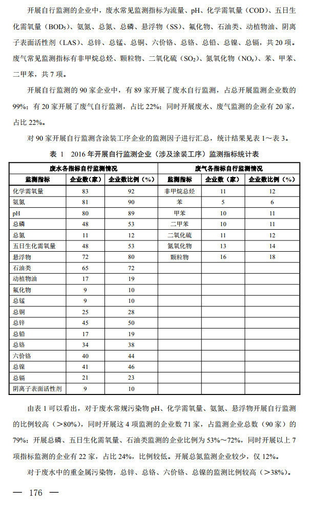 近日,生態(tài)環(huán)境部發(fā)布了《排污單位自行監(jiān)測技術(shù)指南涂裝 (征求意見稿)》編制說明,對廢水指標監(jiān)測情況、廢氣指標監(jiān)測情況(包括部分揮發(fā)性有機物)、固體廢物來源情況等進行了統(tǒng)計與分析,全文如下: