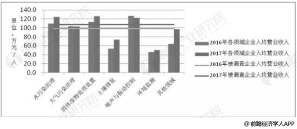 從勞動生產(chǎn)率看,規(guī)模以上被調(diào)查企業(yè)人均營業(yè)收入和企業(yè)平均營業(yè)收入均低于2017年規(guī)模以上工業(yè)企業(yè)平均值,反映了與傳統(tǒng)工業(yè)行業(yè)平均水平相比,環(huán)保產(chǎn)業(yè)生產(chǎn)效率較低。與2016年相比,2017年相同樣本企業(yè)的平均人均營業(yè)收入、企業(yè)平均營業(yè)收入均有所提高,分別提高了9.3%、15.4%。