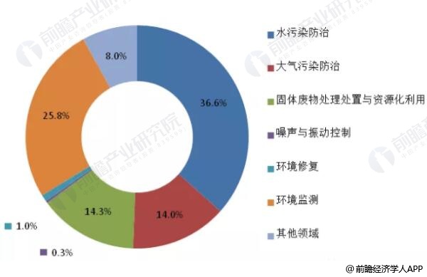 2017年中國各細(xì)分領(lǐng)域環(huán)保企業(yè)數(shù)量分布占比統(tǒng)計情況