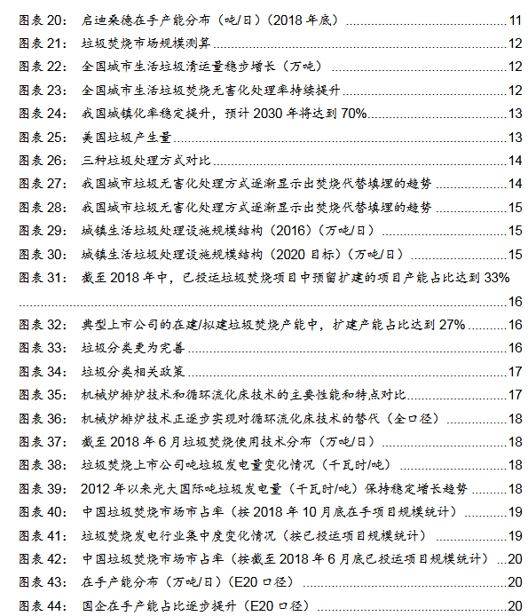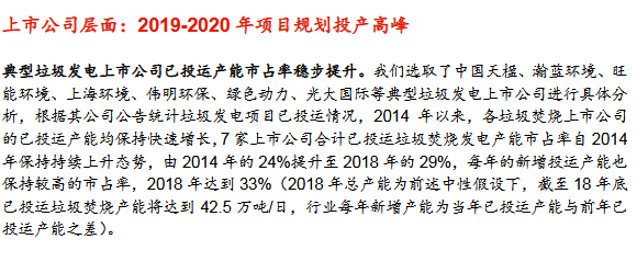 競爭格局:集中度較高,國企競爭力增強根據(jù)2018年10月的垃圾焚燒項目在手規(guī)模排序,目前垃圾焚燒行業(yè)主要的參與者包括:1)國企:光大國際、中國環(huán)境保護集團、綠色動力環(huán)保、皖能環(huán)保、康恒環(huán)境、北京控股、重慶三峰、上海環(huán)境、啟迪桑德、廣州環(huán)保、瀚藍環(huán)境等;2)民企:錦江環(huán)境、盛運環(huán)保、中國