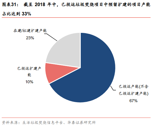 “鄰避效應”的有效應對有效緩解了垃圾發(fā)電產(chǎn)能擴張的阻礙因素。由于環(huán)境壓力的日益加重,推動垃圾發(fā)電行業(yè)發(fā)展已成為業(yè)內(nèi)的共識。但由于部分民眾對垃圾焚燒發(fā)電的認識不足,抵制并阻撓所在地區(qū)焚燒發(fā)電廠的建設(shè)運營,“鄰避效應”加大了垃圾焚燒發(fā)電廠的選址難度,制約了行業(yè)的快速發(fā)展。但在當前“鄰避效應”能夠更有效應對:1)行業(yè)發(fā)展更為成熟、環(huán)保督查趨嚴,公信力提升機向群眾宣傳和信息公開透明制度更為完善;2)擴建比例較高,在原址附近擴建鄰避效應會有效減弱。截至2018年中,已投運的所有垃圾焚燒項目中,預留擴建的項目產(chǎn)能占比達到33%,其中已投運的擴建項目產(chǎn)能占比為10%,尚處于在建/擬建的項目擴建產(chǎn)能占比為23%。一方面,在垃圾焚燒處理能力不足以滿足實際需求的情況下,很多項目選擇在現(xiàn)有焚燒處理廠的基礎(chǔ)上進行擴建;另一方面,多數(shù)項目在最初規(guī)劃選址時就會在一期項目的焚燒處理廠附近預留出二期項目甚至三期項目的場地。而已有廠區(qū)周邊的居民對于這些擴建項目的接受度相對更高,鄰避效應的作用也會因此得到較大緩解。