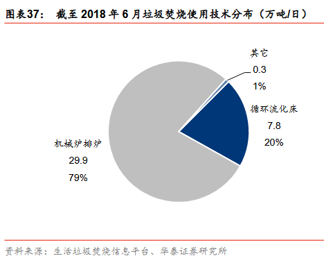 使用機械爐排爐技術(shù)的垃圾焚燒產(chǎn)能自2011年來顯著提升,截至2018年6月,已投運垃圾焚燒產(chǎn)能中使用機械爐排爐技術(shù)的產(chǎn)能達29.9萬噸,占比達到79%。