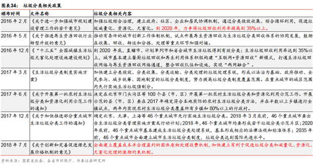 驅(qū)動因素三:垃圾分類+技術(shù)的進步=噸垃圾發(fā)電量的提升“46城”率先先行實施生活垃圾分類,垃圾分類攻堅戰(zhàn)打響。2016年以來,政策持續(xù)加碼督促垃圾分類工作全面、有序推進,要求全面建立覆蓋成本并合理盈利的固體廢物處理收費機制,加快建立有利于促進垃圾分類和減量化、資源化、無害化處理的激勵約束機制;目標在2020年力爭將垃圾回收利用率提高到35%以上。