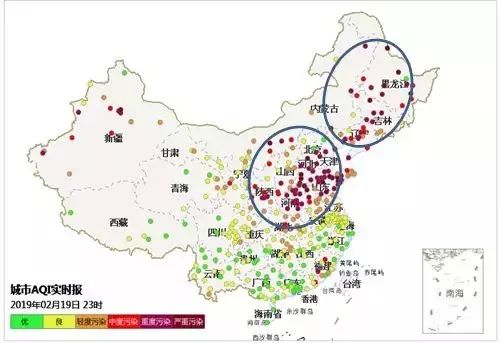 2019年2月19日23時城市AQI情況