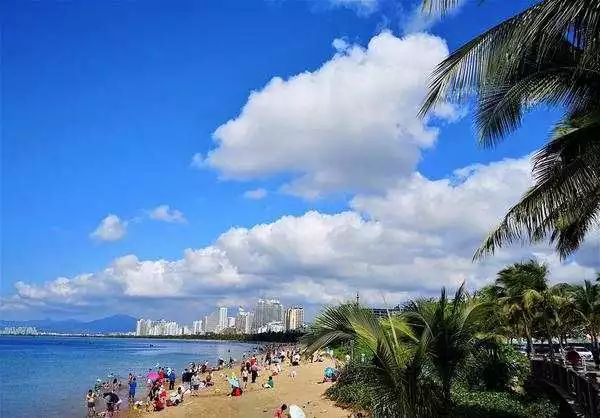 2月6日,人們在美麗的海南三亞海濱浴場休閑度假。(劉書亭攝)