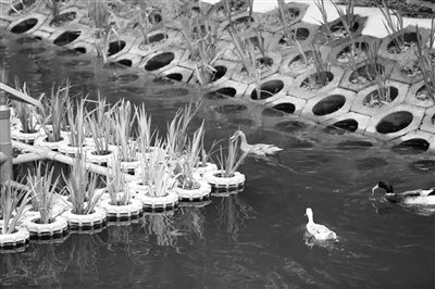 圖為虹口區(qū)河道里種植的綠色植物。