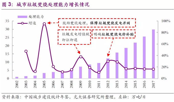 垃圾處理服務(wù)費(fèi)和電價(jià)補(bǔ)貼刺激行業(yè)發(fā)展