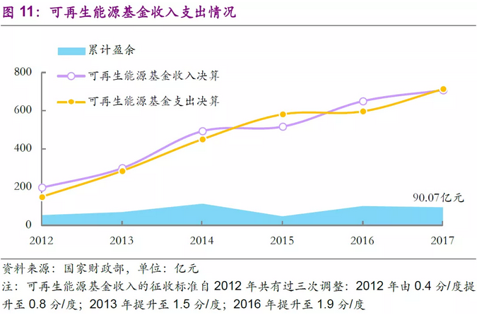 其中補(bǔ)貼來(lái)自兩部分,一部分是各省級(jí)電網(wǎng)負(fù)擔(dān)的0.1元/度的省級(jí)補(bǔ)貼(電網(wǎng)企業(yè)通過(guò)銷售電價(jià)予以疏導(dǎo)),另一部分來(lái)自可再生能源發(fā)展基金(屬于中央政府性基金)中的電價(jià)附加收入安排的支出;目前市場(chǎng)比較關(guān)注垃圾焚燒發(fā)電電價(jià)補(bǔ)貼(尤其是國(guó)補(bǔ))變動(dòng)的可能性。