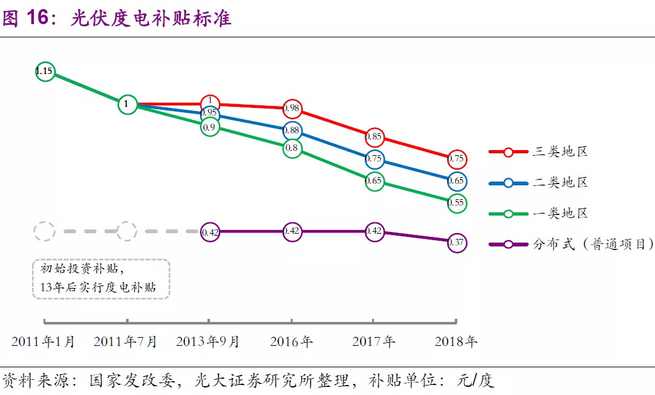 3.1.2、光伏補(bǔ)貼退坡有利于優(yōu)化成本控制