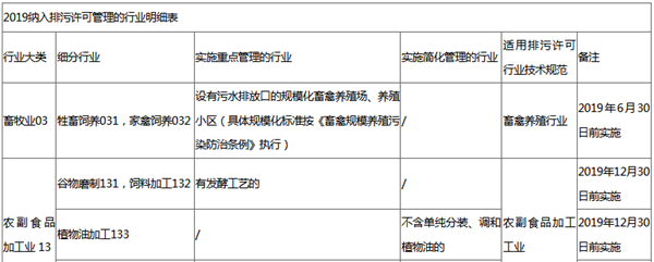 2019年6月30日前納入排污許可管理的細(xì)分行業(yè)有:牲畜飼養(yǎng)031,家禽飼養(yǎng)032、乳制品制造144、調(diào)味品和發(fā)酵制品制造146、方便食品制造143,其他食品制造149、酒的制造151、制鞋業(yè)195、人造板制造202、木質(zhì)家具制造211,竹和藤家具制造212、聚氯乙烯、肥料制造262(磷肥)、汽車制造361 -367、電池制造384、金屬廢料和碎屑加工處理421,非金屬廢料和碎屑加工處理422、電力生產(chǎn)441、污水處理及其再生利用462、環(huán)境治理業(yè)772。通用工序:熱力生產(chǎn)和供應(yīng)443、電鍍設(shè)施、生活污水集中處理、工業(yè)廢水集中處理。