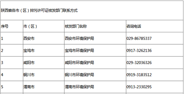 陜西省環(huán)境保護(hù)廳負(fù)責(zé)全省排污許可制度的組織實施和監(jiān)督。西安市、寶雞市、咸陽市、銅川市、渭南市、韓城市、楊凌示范區(qū)、延安市、榆林市、漢中市、安康市、商洛市、西咸新區(qū)納入2019年申領(lǐng)范圍的排污單位,向其生產(chǎn)經(jīng)營場所所在地的市級環(huán)境保護(hù)部門申領(lǐng)排污許可證,延安市的排污單位向其生產(chǎn)經(jīng)營場所所在地的市級行政審批部門申領(lǐng)排污許可證(核發(fā)部門聯(lián)系方式詳見附件2)。