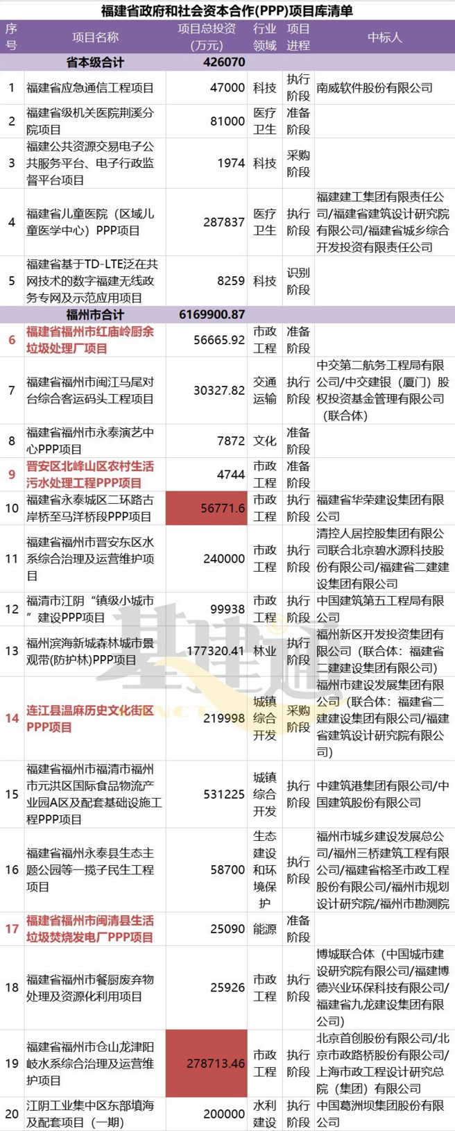 這也是福建省首次對外公布的進行PPP項目清庫后的留庫清單。