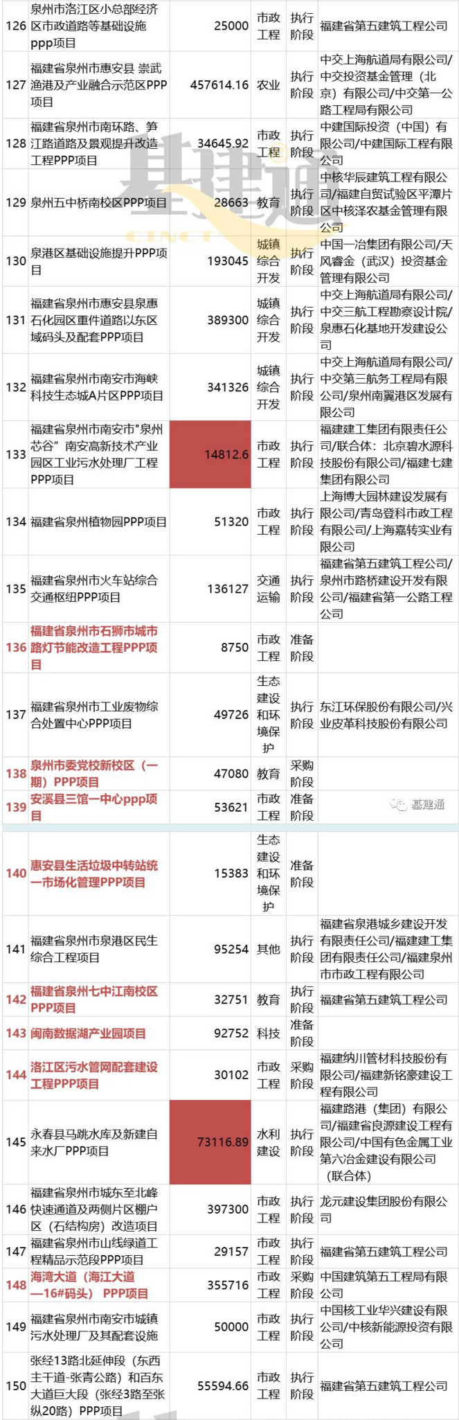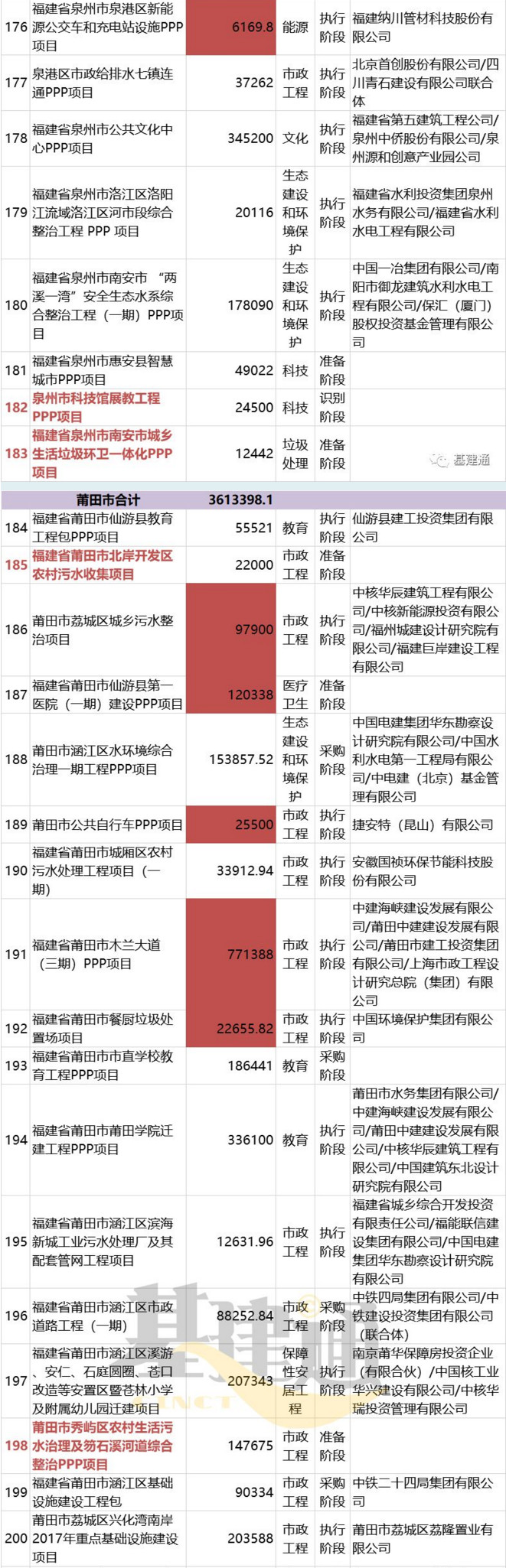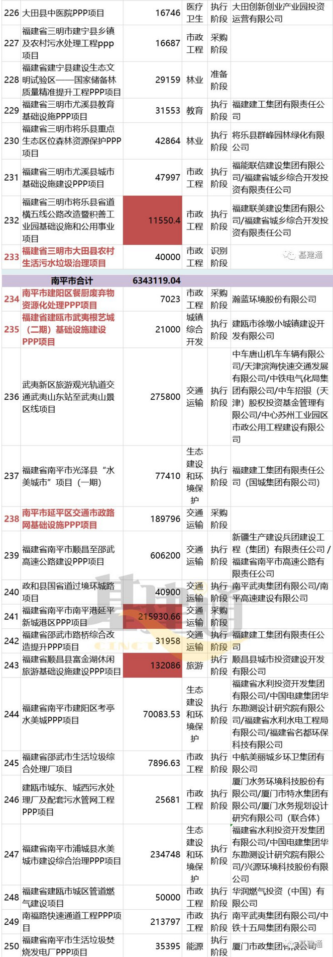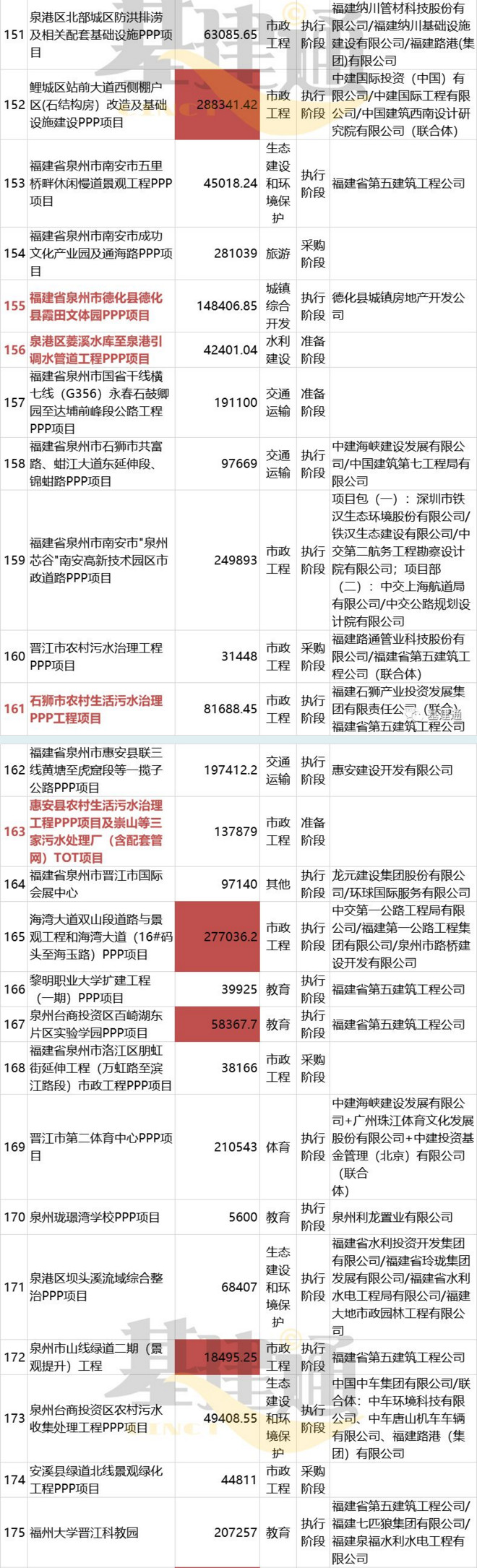 當(dāng)然,有減就有增。除了清退出庫24個項目,基建通還發(fā)現(xiàn),此次又新入庫了93個PPP項目,這些項目的總投資近786億元。而經(jīng)過對項目管理庫動態(tài)清單的跟蹤,截止到目前,福建省PPP項目庫中共計項目336個,項目總投資為36141742.37萬元。另外,還有46個項目的投資額發(fā)生了變更,相抵消后增加差不多40億投資額。