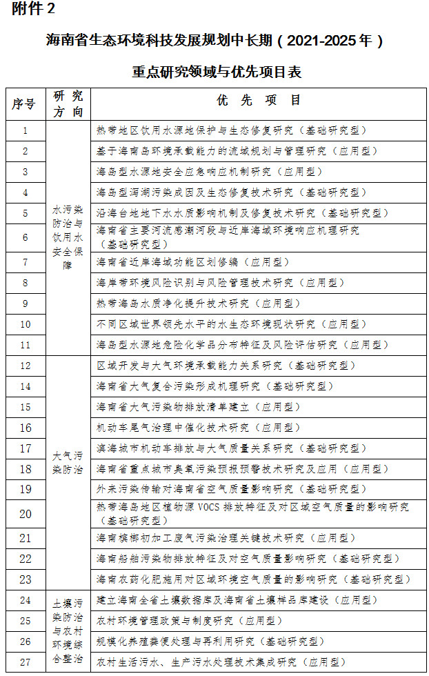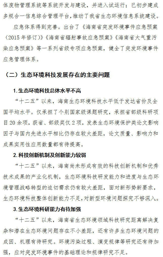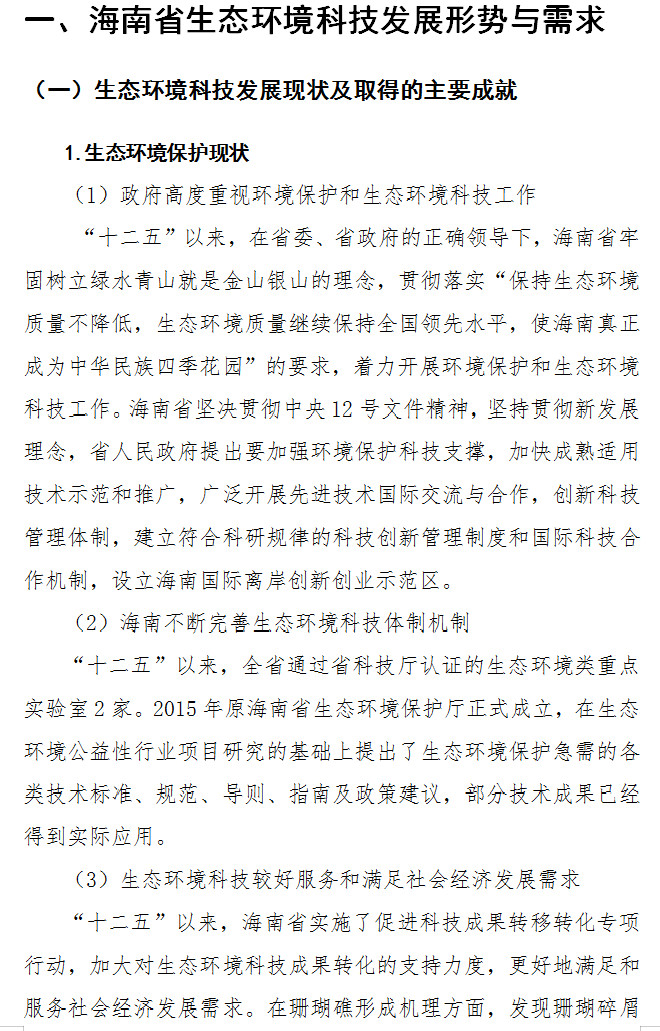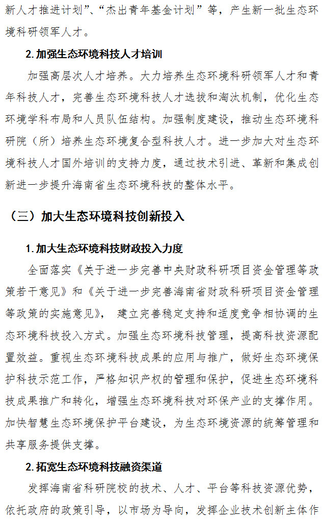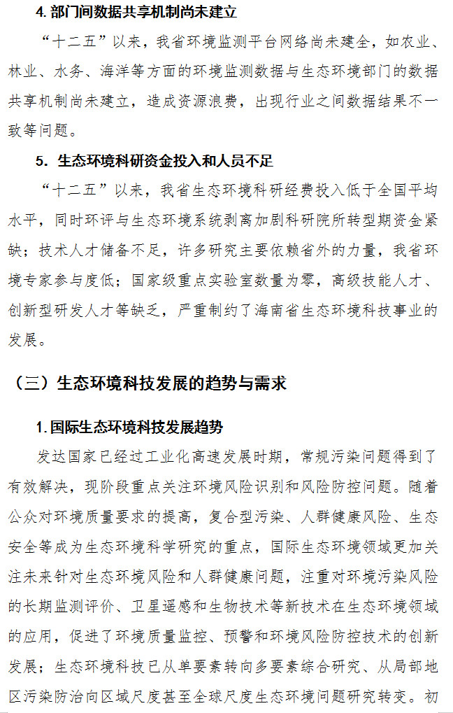 關(guān)于印發(fā)《海南省生態(tài)環(huán)境科技發(fā)展規(guī)劃(2019-2025)》的通知