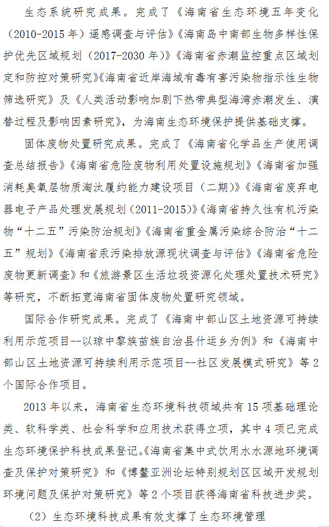 為提高全省生態(tài)環(huán)境科技發(fā)展水平,發(fā)揮科技創(chuàng)新對生態(tài)環(huán)境保護(hù)的支撐保障作用,根據(jù)《國家環(huán)境保護(hù)“十三五”科技發(fā)展規(guī)劃綱要》《海南省“十三五”科技發(fā)展規(guī)劃》《海南省“十三五”生態(tài)環(huán)境保護(hù)規(guī)劃》和《中共海南省委 海南省人民政府關(guān)于加快科技創(chuàng)新的實(shí)施意見》,我廳組織擬定了《海南省生態(tài)環(huán)境科技發(fā)展規(guī)劃(2019-2025)》,現(xiàn)印發(fā)你們,請認(rèn)真貫徹落實(shí)。