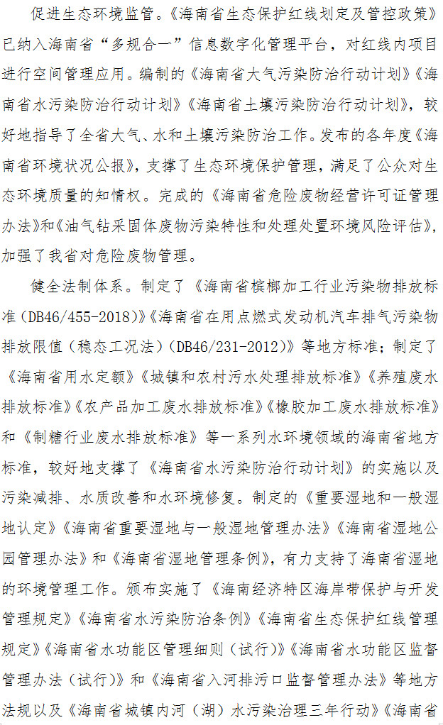 近日,海南省印發(fā)了《海南省生態(tài)環(huán)境科技發(fā)展規(guī)劃(2019-2025)》的通知,通知規(guī)定要強(qiáng)化大氣環(huán)境監(jiān)測和大氣污染綜合防治關(guān)鍵技術(shù)、水環(huán)境監(jiān)測及流域水污染控制與治理成套技、土壤地下水環(huán)境保護(hù)與修復(fù)關(guān)鍵技術(shù)、固體廢物處理處置及有毒有害污染物控制技術(shù)等,全文如下: