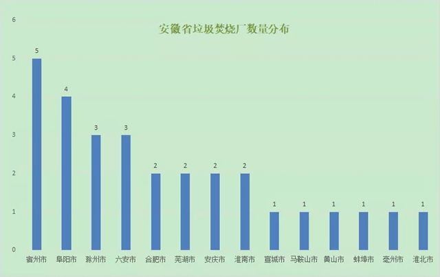 下面再和大家分享一下安徽省各地市垃圾焚燒廠的分布情況: