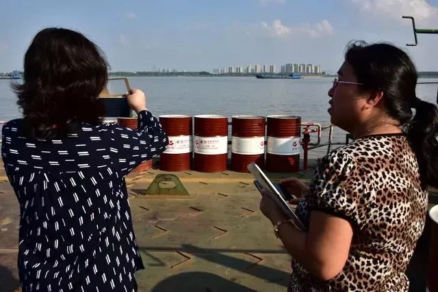 2017年9月,原環(huán)境保護部長江經(jīng)濟帶飲用水水源地環(huán)境保護執(zhí)法專項行動第一督查組在湖北荊州督查。圖為碼頭上的危險化學(xué)品引起督查人員注意。攝影/章軻