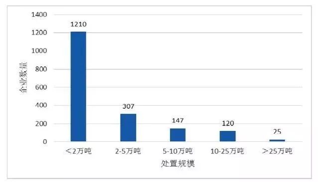 2017年危險廢物處置企業(yè)規(guī)模數(shù)量圖。資料來源:中國環(huán)聯(lián)