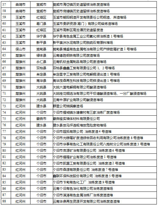 云南省工業(yè)固體廢物堆存場(chǎng)所環(huán)境整治清單(185個(gè))