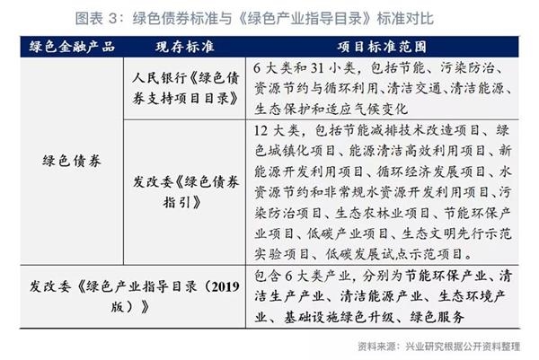 與原銀監(jiān)會發(fā)布的綠色信貸統(tǒng)計(jì)制度標(biāo)準(zhǔn)進(jìn)行比對(圖表2),橫向來看,《目錄》與已有的綠色項(xiàng)目標(biāo)準(zhǔn)比較一致,均囊括了節(jié)能環(huán)保、清潔生產(chǎn)、清潔能源、生態(tài)環(huán)境、基礎(chǔ)設(shè)施綠色升級等各個綠色領(lǐng)域,但是縱向來看,《目錄》則覆蓋了從上游的綠色設(shè)備生產(chǎn),到中游的綠色項(xiàng)目設(shè)施建設(shè)運(yùn)營等,再到下游的綠色項(xiàng)目運(yùn)營管理、監(jiān)測、認(rèn)證評估等綠色服務(wù)整個產(chǎn)業(yè)鏈,更加全面地對綠色相關(guān)產(chǎn)業(yè)進(jìn)行了界定。例如,從綠色服務(wù)的界定來看,綠色信貸標(biāo)準(zhǔn)中的節(jié)能環(huán)保服務(wù)包括了節(jié)能環(huán)保項(xiàng)目相關(guān)的咨詢、工程設(shè)計(jì)、評估、調(diào)查等服務(wù),而《目錄》中除此之外還包括了用能權(quán)、水權(quán)、排污權(quán)、碳排放權(quán)、綠證等環(huán)境權(quán)益交易服務(wù)?!赌夸洝返某雠_,為綠色信貸標(biāo)準(zhǔn)的更新與修訂提供了重要依據(jù)。