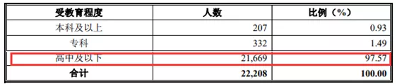同行業(yè)的玉禾田近5萬員工中初中及以下學歷也占了90%左右,達到離退休年齡的也占了總?cè)藬?shù)的一半以上。
